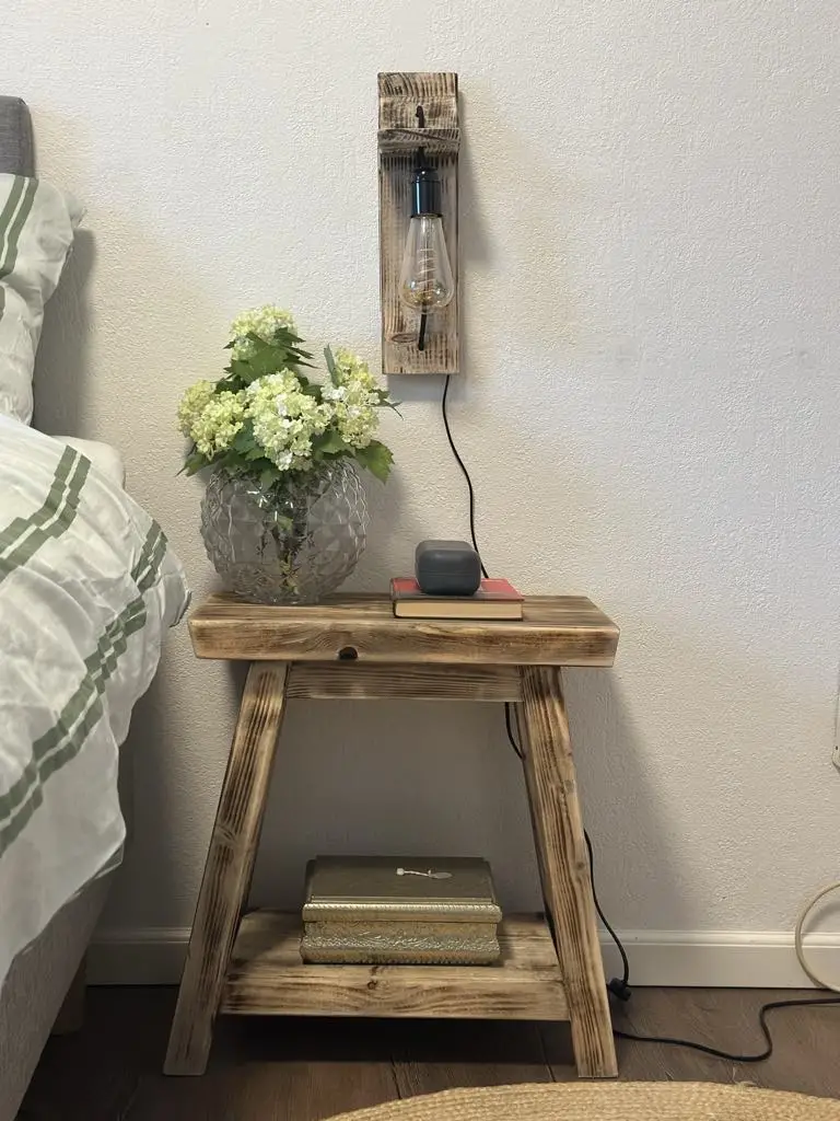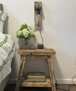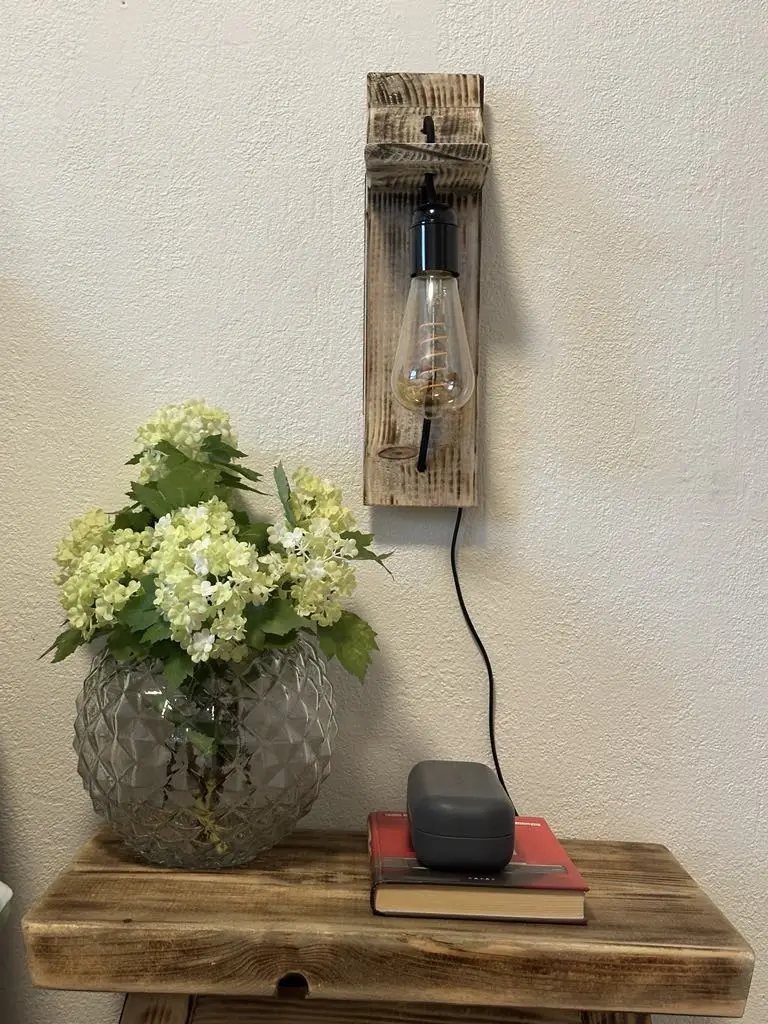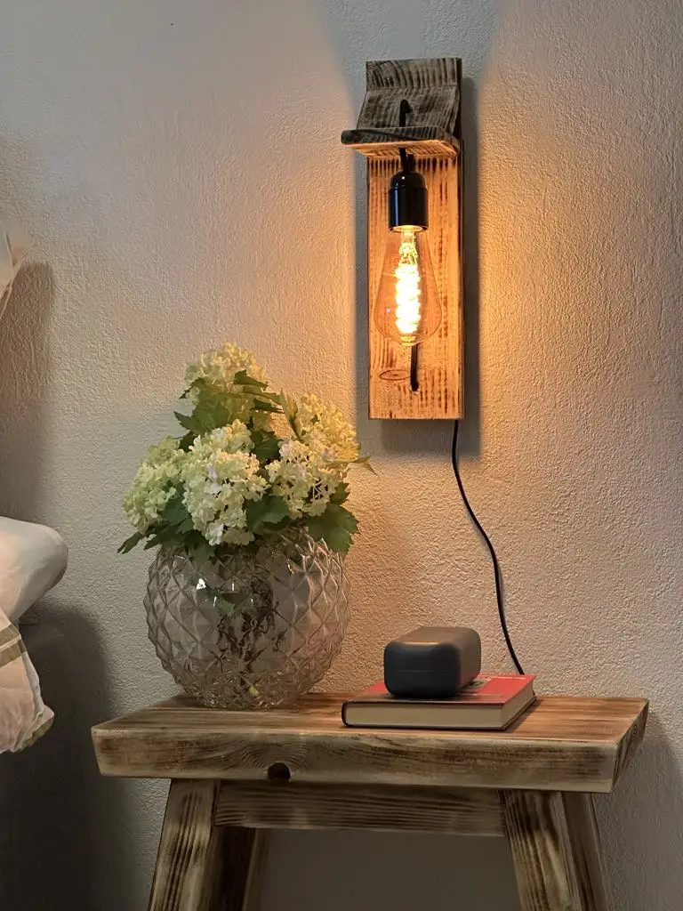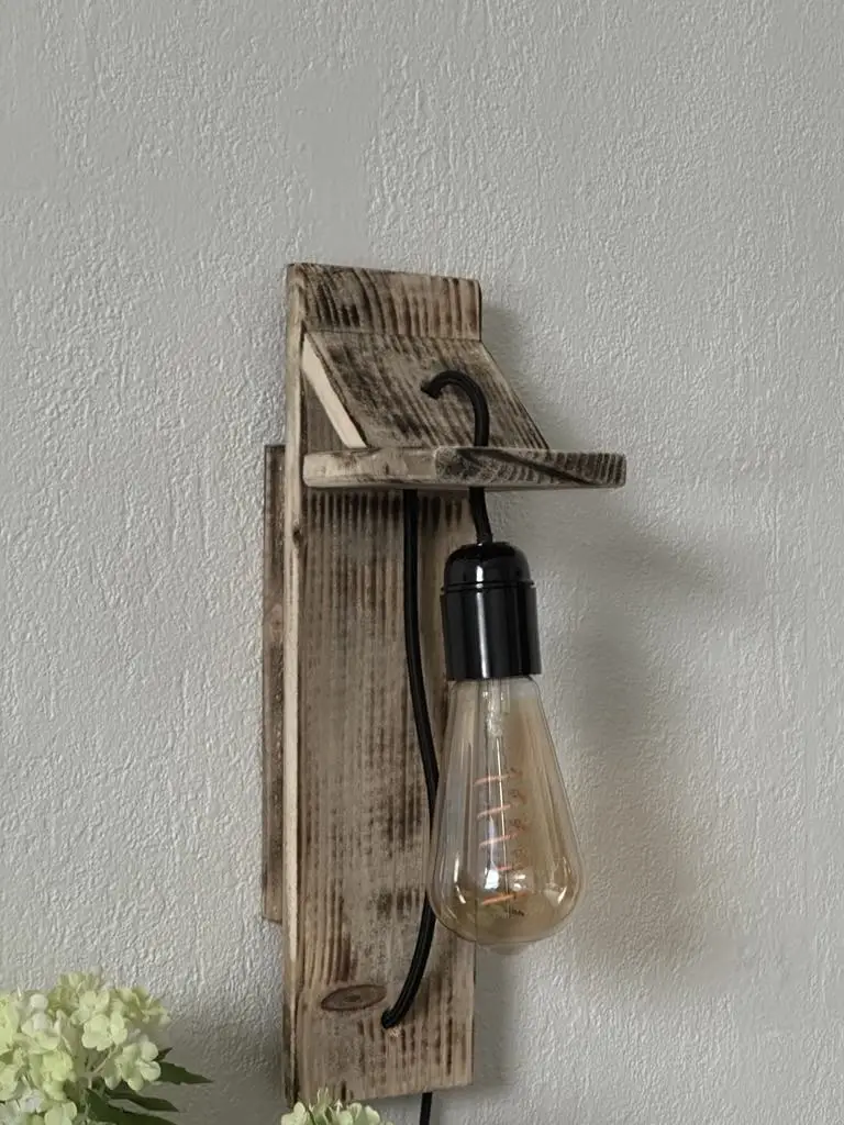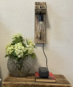 Giv dit hjem et unikt og stemningsfuldt præg med denne smukke, rustikke væglampe. Lampen er håndlavet af materialer af genbrugstræ, der giver den et robust og autentisk udseende.Jeg har to styk af disse lamper men prisen er pr. styk